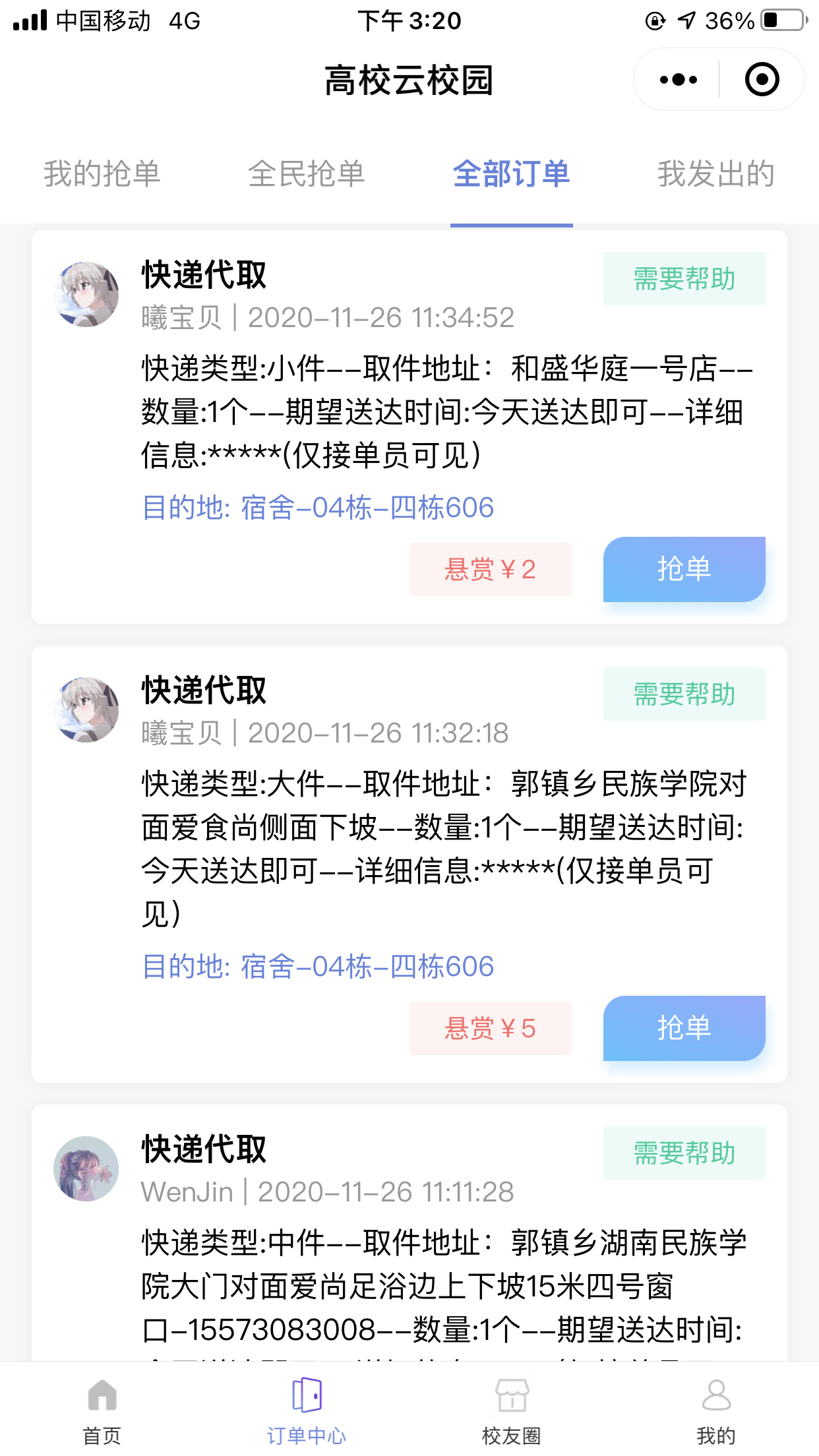 我们为同学提供快递代取服务将您的快递送到您前门前